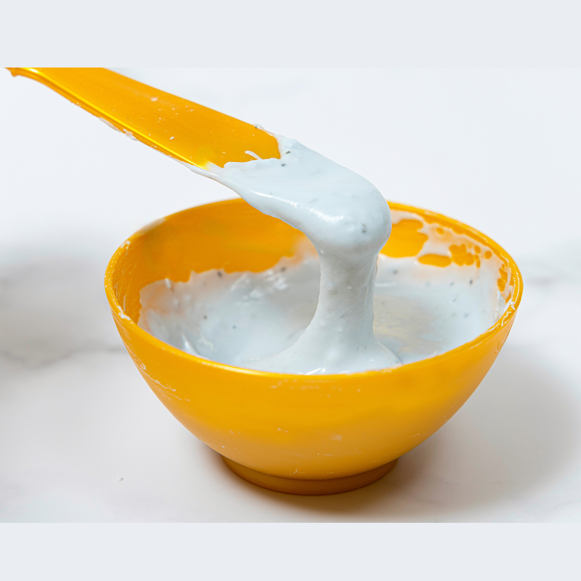 Prepare the mixture: Add 25g of powder to a bowl. Pour water or ampoule at a 1:0.8 ratio and mix thoroughly using a spatula.